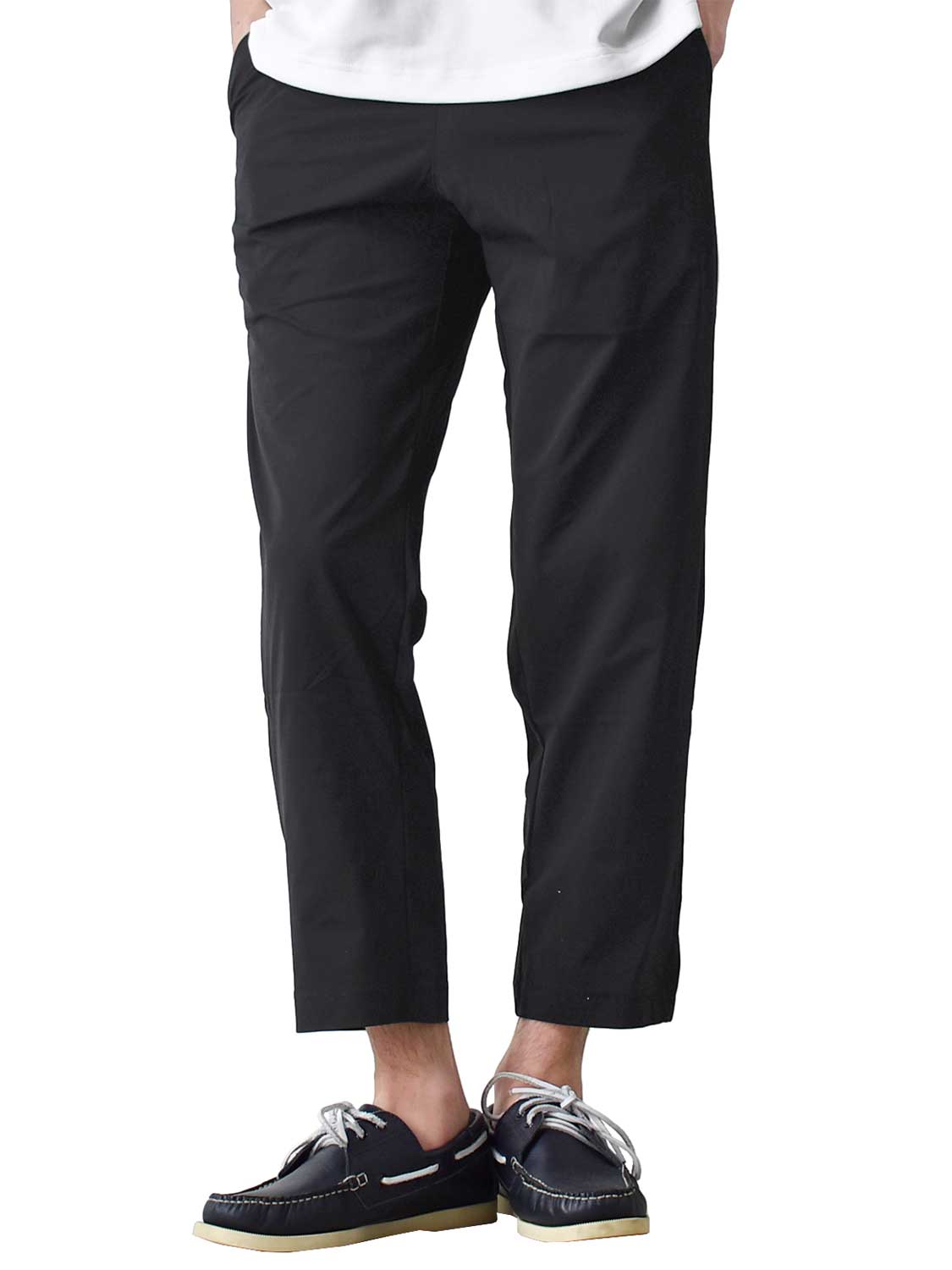 軽量でストレッチ性に優れたメンズアンクルパンツ。9分丈のデザインが足元をすっきりと見せ、春夏シーズンにぴったりな軽やかな着心地を提供します。ストレッチ素材を使用しているため、動きやすさも抜群で、日常的に快適に過ごせます。ウエスト部分にはゴムとドローコードが施されており、リラックスしたフィット感を実現。カジュアルなコーディネートにも、きれいめなスタイルにも使えるシンプルでおしゃれなシルエットが魅力です。