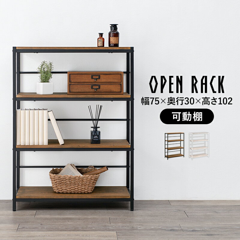オープンシェルフ 棚 ラック 4段 オープンラック 木製 スリム 軽量 北欧 シェルフ 隙間収納 幅75 収納 おしゃれ 薄型 収納ラック ディスプレイラック