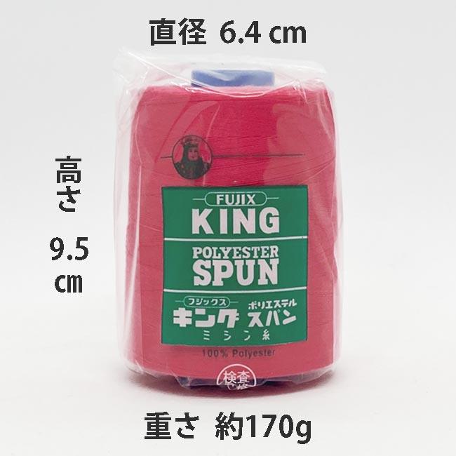 フジックスのキングスパンは、ポリエステル素材の中でもミシン糸用として特別に紡糸された、高強力、低伸度、低収縮タイプの原糸を用い、さらに高度な加工技術によって、一段と<可縫性>を高め、使用範囲を広げた、スーパークォリティのミシン糸です。