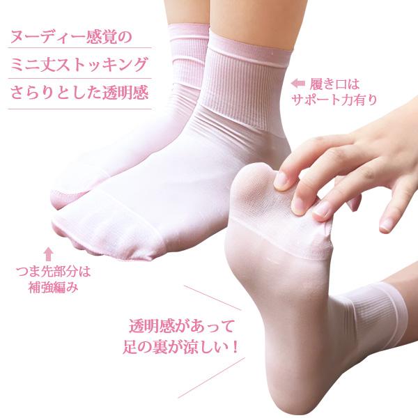 ヌーディー感覚のミニ丈ストッキングで、さらりとした履き心地の透明感が魅力です。