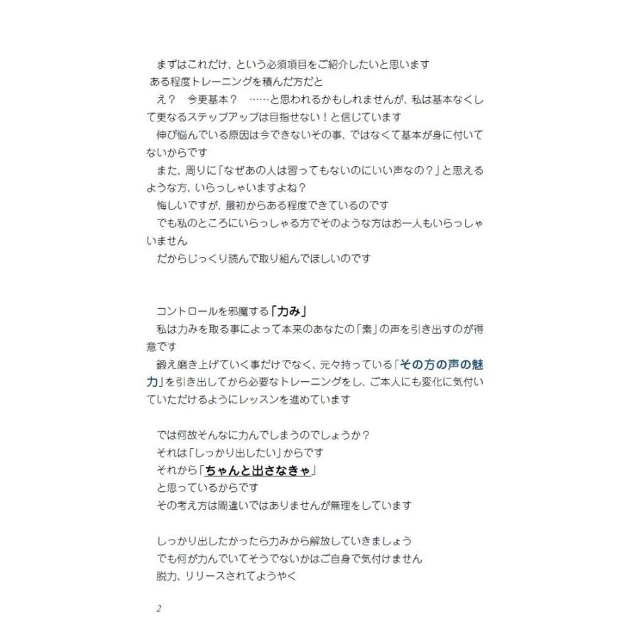 ・歌声の発声の基本を知りたい・うまく声が出ないストレスがある・喉がすぐ疲れてしまう(枯れてしまう)・ボーカル歴は長いのに声が育たないなどなぜ気持ち良く声が出ないのか?その原因を見つけ、エクササイズで弱点を鍛え自信を持って歌える良い声を育てていくことができます