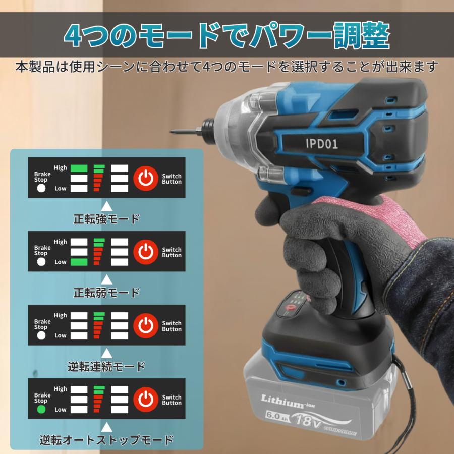 LEDライト搭載 ・逆転時オートストップ機能 ・正逆転切り替え機能 ・トリガーロック機能付き