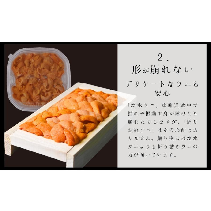 ◆ 商品内容北海道 礼文・利尻島産 キタムラサキウニ90g【折り詰】◆すぐにお届けできない場合◆○天候(シケ)により出漁できず水揚げがない場合。○水揚げがあっても当社基準の品質を満たしていない場合、品質の良いものをお届けいたしますので、今しばらくお待ちください。◆ 産地北海道 礼文・利尻島産◆ 原材料ウニ、食塩、ミョウバン◆ 賞味期限冷蔵保管で約1〜2日※生ものですのでお早めにお召し上がり下さい