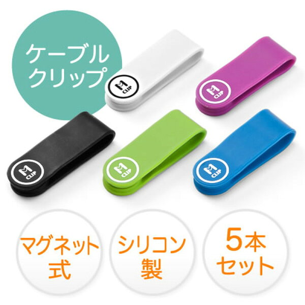 クリップ マグネット 5色 セット おしゃれ かわいい 万能 ケーブルクリップ ケーブルタイ 結束 バンド シリコン製 ケーブルホルダー 磁石 冷蔵庫 200-CA021