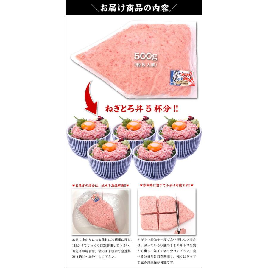 新鮮な天然マグロを厳選し、独自の技術で食べやすくマイルドなネギトロに加工しました。生臭さもなく、脂くどくもなく、マグロ本来の旨みが存分に味わえます。今回は、ボリューム満点の業務用たっぷり500g(約5人前)を破格値でのご提供!解凍してご飯の上に乗せるだけで、専門店で食べる極上ネギトロ丼がご家庭で手軽に楽しめます♪