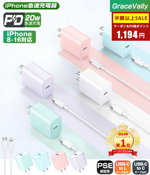 \92%OFF&P5倍で1,194円/【楽天1位★急速充電3点セット】【MFi/PSE認証済】iPhone 充電器 20W PD充電器 Lightningケ…