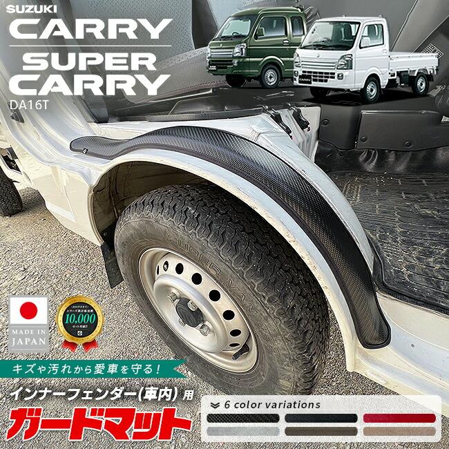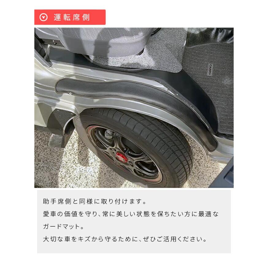 商品説明 スズキ キャリイ スーパーキャリイ DA16T専用のガードマットは、車内をキズや汚れからしっかりと守るために設計されたアクセサリーです。インナーフェンダー部分にぴったりとフィットし、車内の美観を保ちながら、耐久性にも優れています。工具不要で簡単に取り付け可能で初めての方でも安心です。専用設計により、スズキ キャリイの内装に自然に溶け込み車内を保護します。