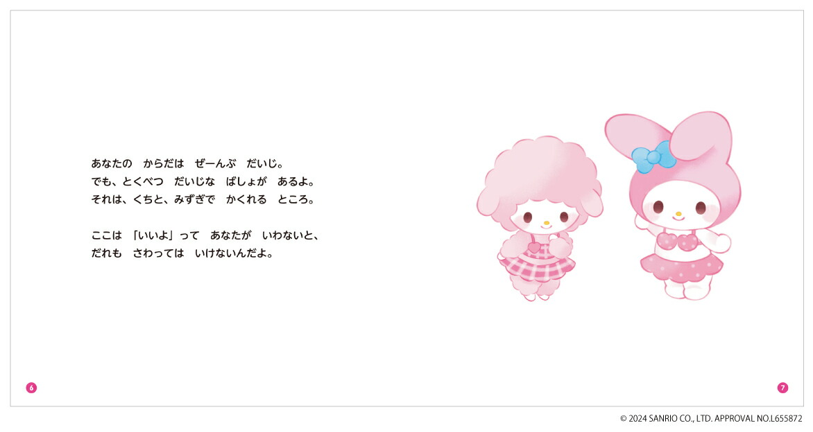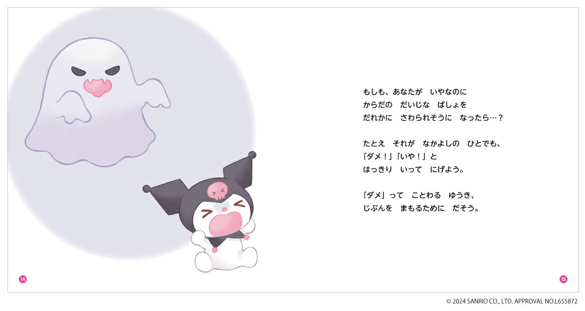 ーあなたの からだは、せかいに ひとつだけ。だいじに だいじに して ほしいの。マイメロディや仲間たちが登場!あなたの体と、その先にある心と尊厳を守るために、最初に伝えたい大事なことを紹介する絵本。読むのを途中でやめても、気になる部分だけピックアップしてもOK!少しずつ読めるメッセージ形式だから、はじめて自分の体について考えるお子さんや、入園入学等の節目節目で振り返りをしたいご家庭にもおすすめ。毎日を楽しく生きる支えになる、おまもりのような一冊です。<本書の内容>●「プライベートパーツ」を知り、体を守る意識を育むページ・口と水着で隠れるところは、とくべつ大事・体の大事な場所を触られそうになったら、「ダメ!」「いや!」と言って逃げよう…等●私たちそれぞれがかけがえのない、守られるべき存在だと伝えるページ・あなたが元気だと、みんなとっても嬉しいよ?・みんな違って、みんなすてき!自分らしくいよう…等●犯罪から身を守るために、生活の中で気をつけたいことを学べるページ・外のトイレに行くときは、大人と一緒・一人のときは、暗くなる前におうちへ帰ろう…等※書いてあることは、すぐにできなくても大丈夫!昨日より「やってみよう」って気持ちになったら、いっぱい自分をほめてあげてね。