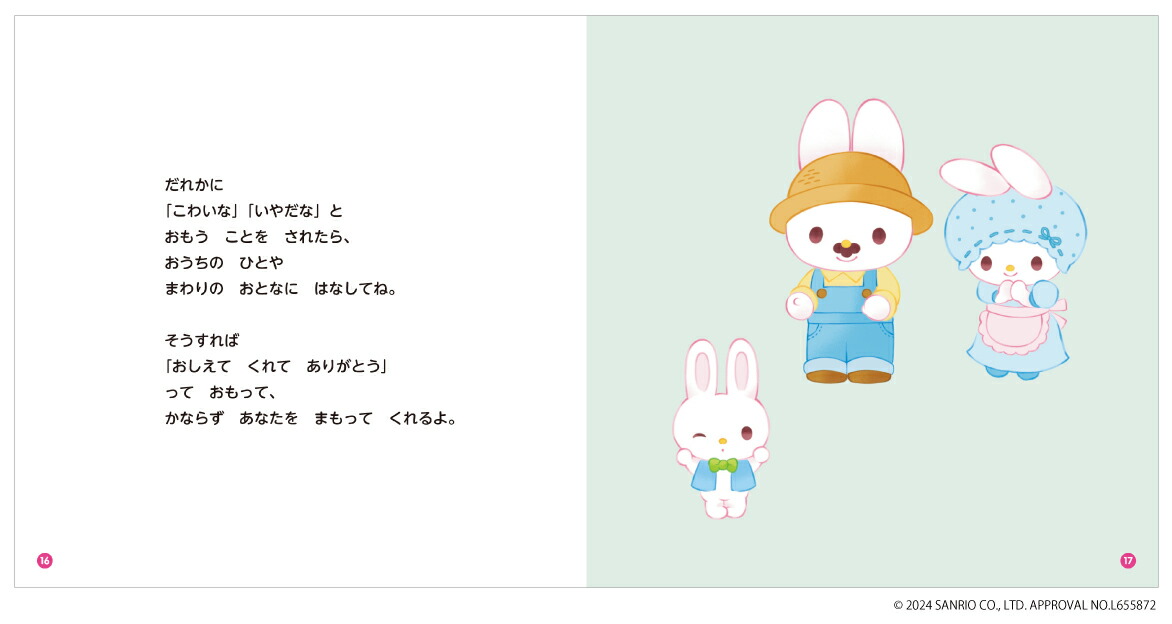 お子さんのからだと尊厳を守るためのメッセージがたっぷり。プライベートパーツ等のからだを守る意識や自己肯定感を育み、犯罪から身を守るために日常生活で気を付けたいことを伝えます。マイメロディ、クロミ、ピアノちゃん等、大好きなキャラクターと一緒に楽しめる一冊です。*本文はすべて平仮名になります。