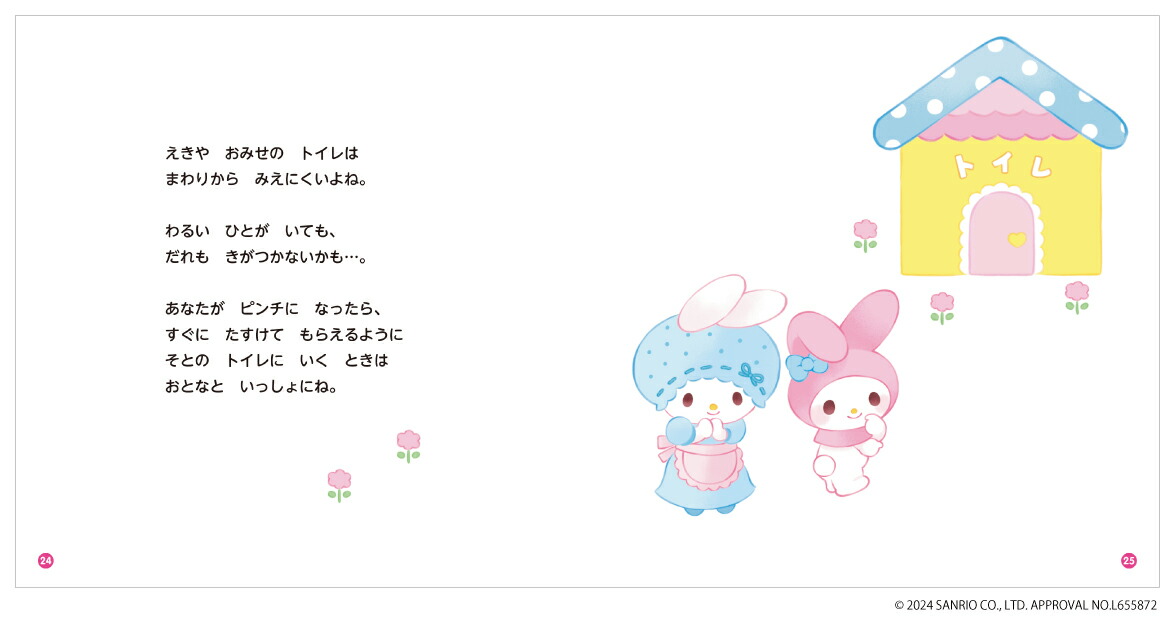 マイメロディのみんなと読める自分を守るためのメッセージ絵本。4さい〜。マイメロディのキャラクター大集合!