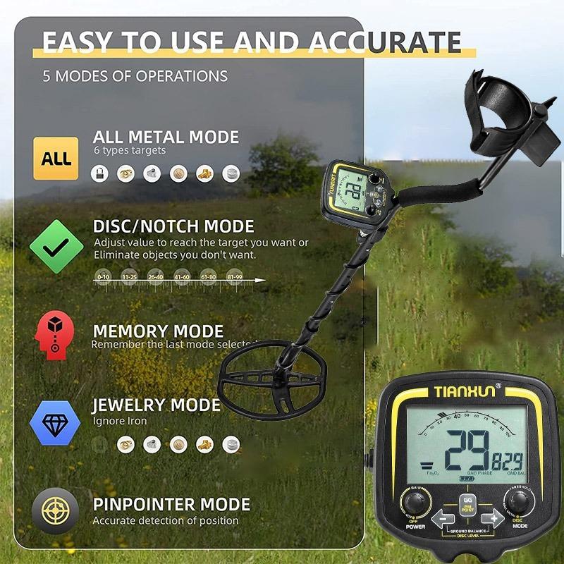 TX-850金属探知機は高感度で強力な検出能力を備えています。 この金属探知機を使用すると、コイン、アーティファクト、ジュエリー、金と銀をどこでも検索できます。