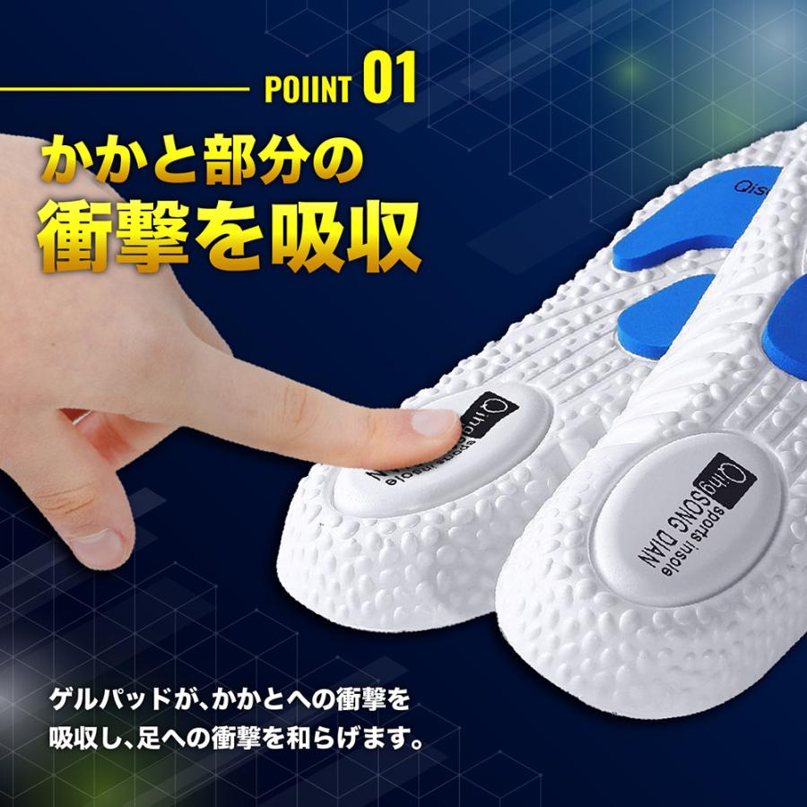 人口工学に基づいた3D立体構造で、しっかり足裏にフィットし歩行時の衝撃や痛みを予防、軽減してくれます。
