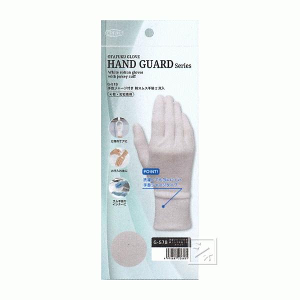おたふく手袋 G-578 手首ジャージ付き 綿スムス手袋 2双入 ホワイト 左右兼用