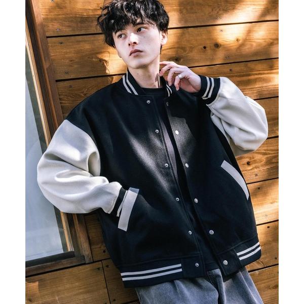 商品名:オーバーサイズテックメルトン/PUレザー切替スタジャン