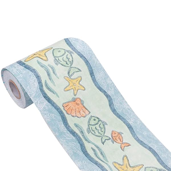 HIGHAWKトリムボーダー 壁紙 シール リフォーム 撥水 防油 可愛い DIY 北欧風 インテリア 10.5cm*10m(ブルー 海)