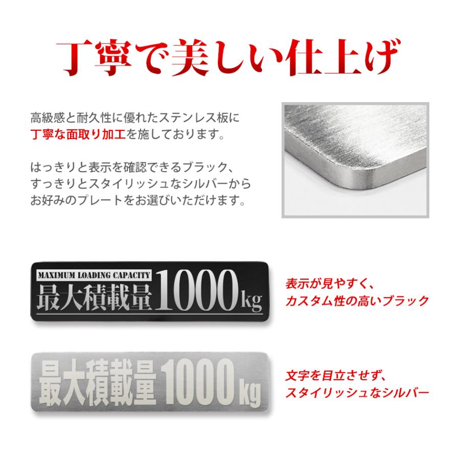 最大積載量 ステンレスプレート 100〜1250kg シルバー ブラック 商用車 貨物車 トラック 軽バン 軽トラ 選べる積載量 350kg 700kg 1000kg 1250kg など 送料無料