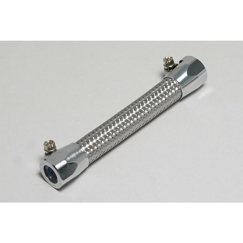 ■特長メカニカルな雰囲気を演出するステンレスメッシュホースとアルミ製フィッティングです。内径φ8ホース仕様でニッシン製ホースの交換にご使用いただけます。標準装備のゴムホースとホースクリップを取り外し交換します。■仕様全長 120mmホース内径 φ8mm※長さはホース部分を含むフィッティングの外から外までの寸法です。■カラーフィッティングカラー クロームホースカラー ステンレスメッシュ■備考ホースはネジ込み式ホースバンドで固定します。■適合車VFR400R NC30