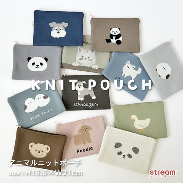 ニットポーチ アニマル ポーチ 小物入れ 可愛い シュナウザー ねこ シマエナガ パンダ トイプードル 犬 あひる クマ グッズ 雑貨 ニット素材 ファスナー プレゼント ギフト stream ストリームマーケット