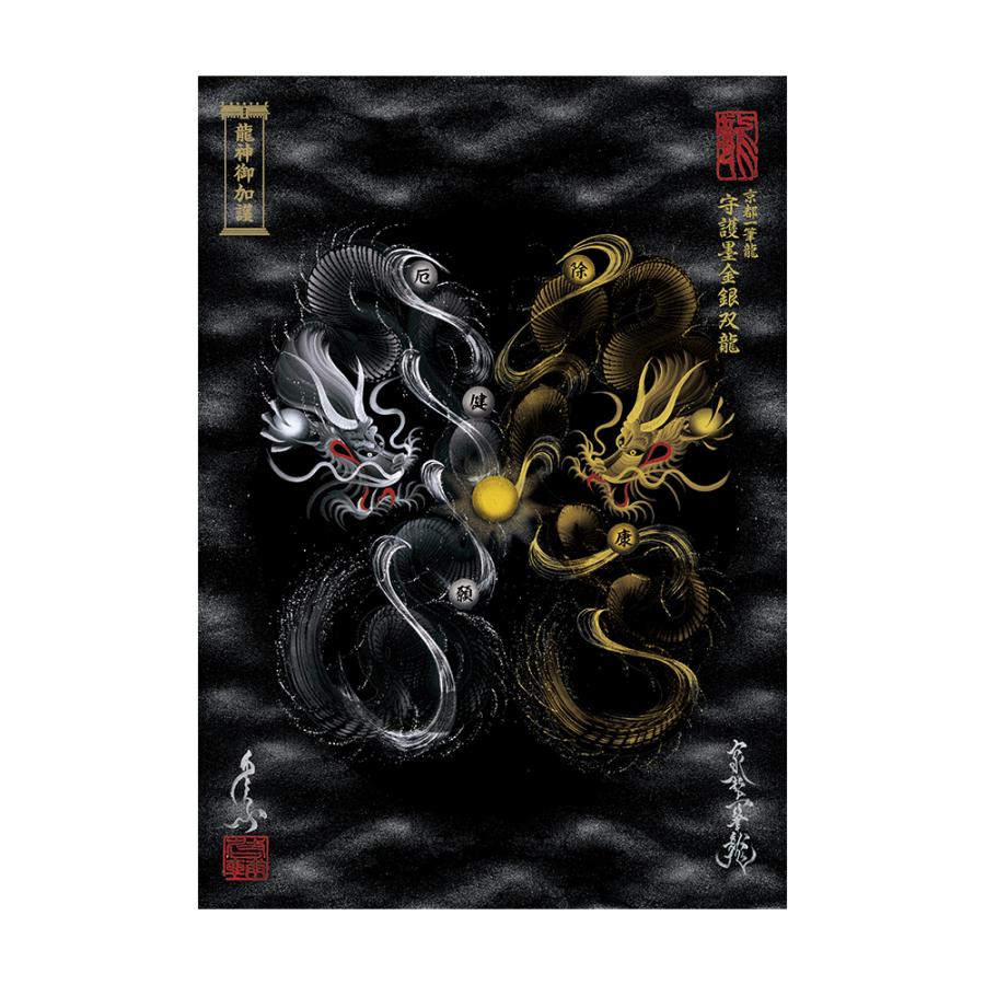 【昇運・守護・縁結びの京都一筆龍】 龍神御加護のポスター 守護黒金銀双龍