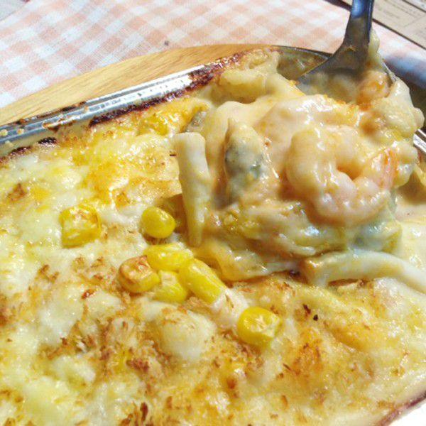 <ご注意>ピザと一緒にご注文いただいております。<シーフードドリア>海の幸たっぷりのドリアはお子様にも大人気です。具材:イカ・エビ・アサリ・オニオン・ピーマン・コーン・ホワイトソース・トマトソース・ナチュラルチーズサイズ:お一人様用です
