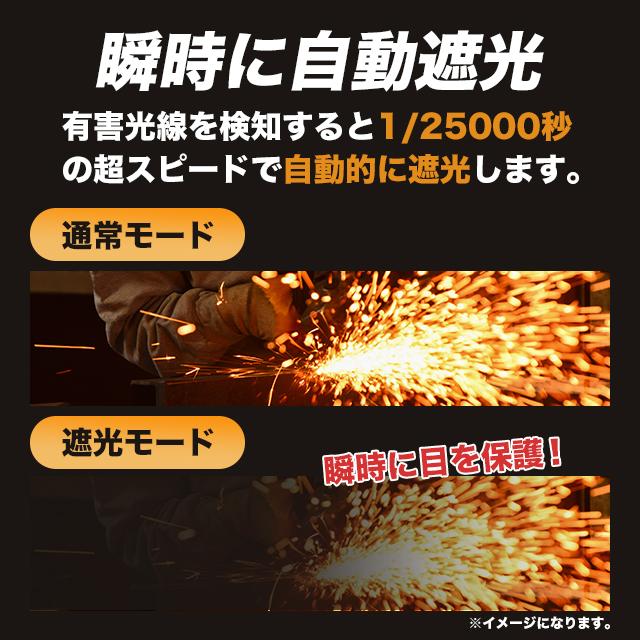 通常モードでは手元などが見やすい視界を確保しますが、有害光線を検知すると1/25000秒の超スピードで自動的に遮光してくれます。