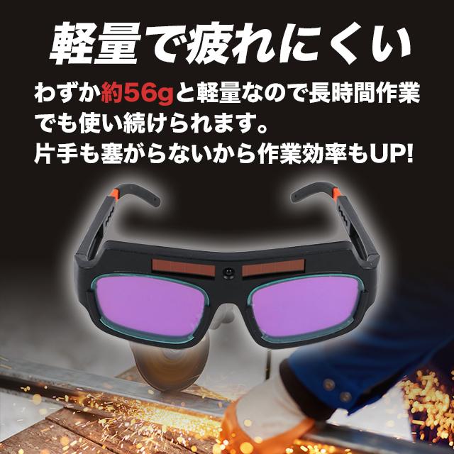 サングラスタイプなので従来の溶接面のように片手がふさがることがなく、作業効率の向上に寄与します。