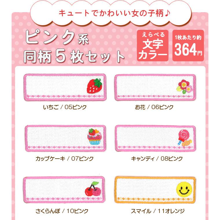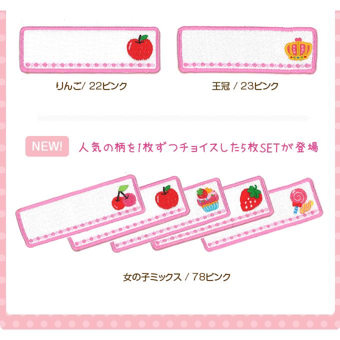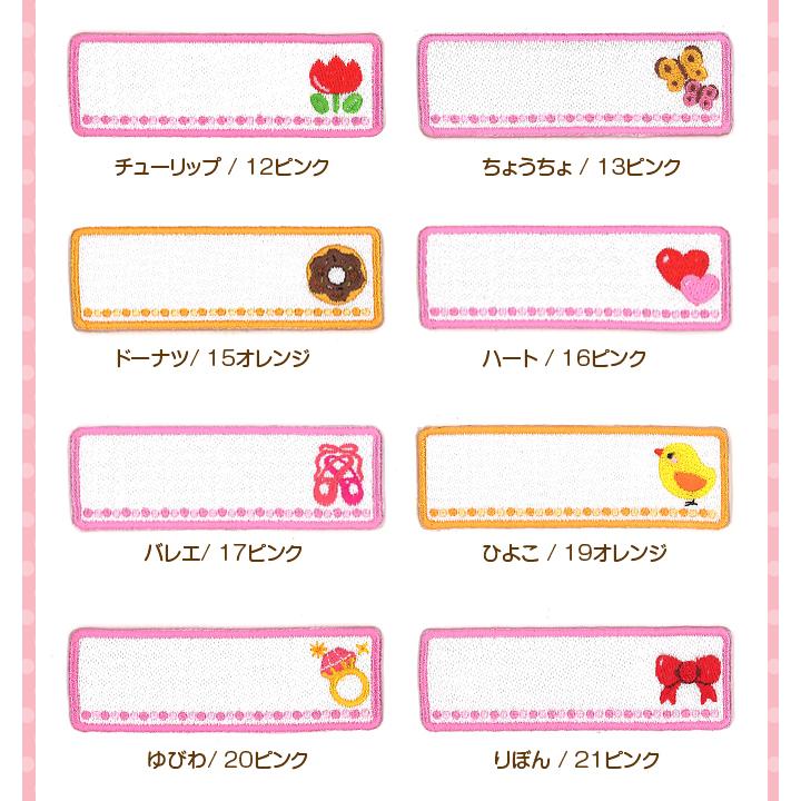 ふちがピンクのワッペンの標準カラーはピンク文字です。