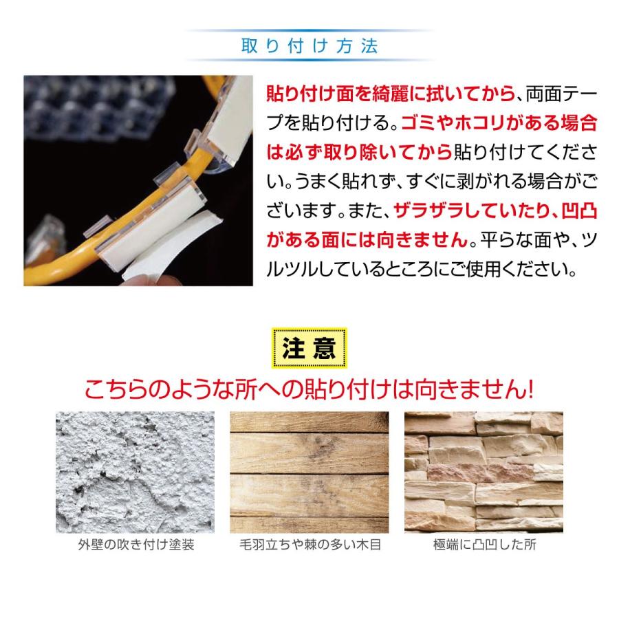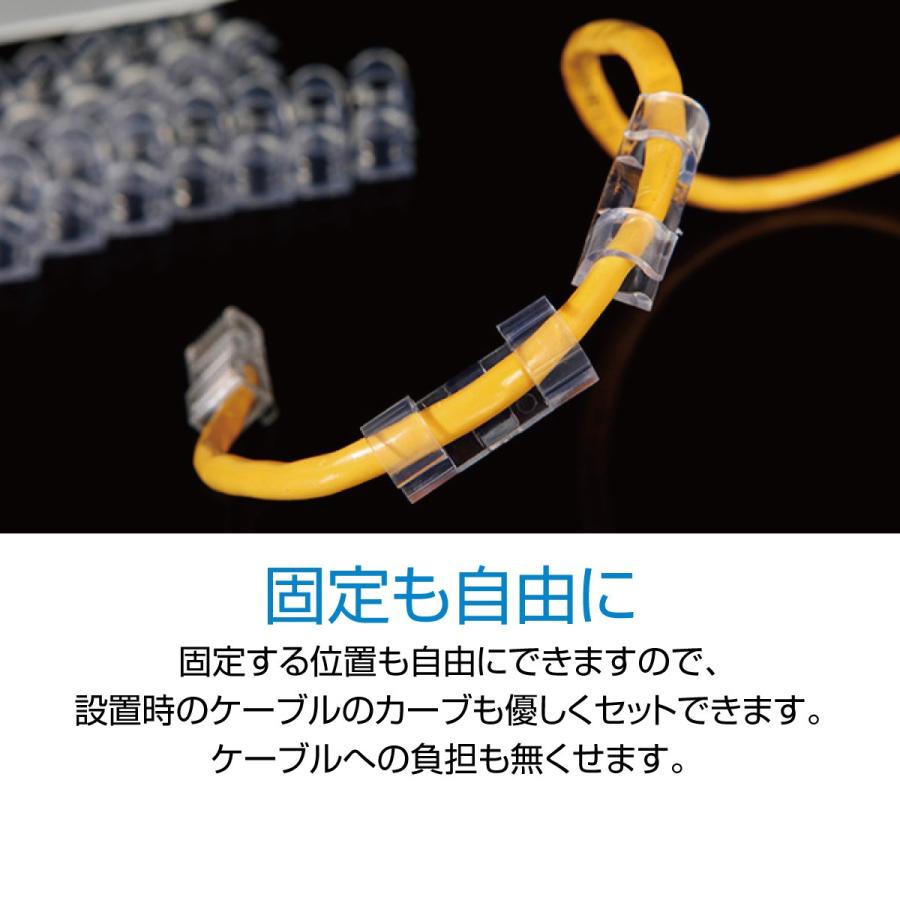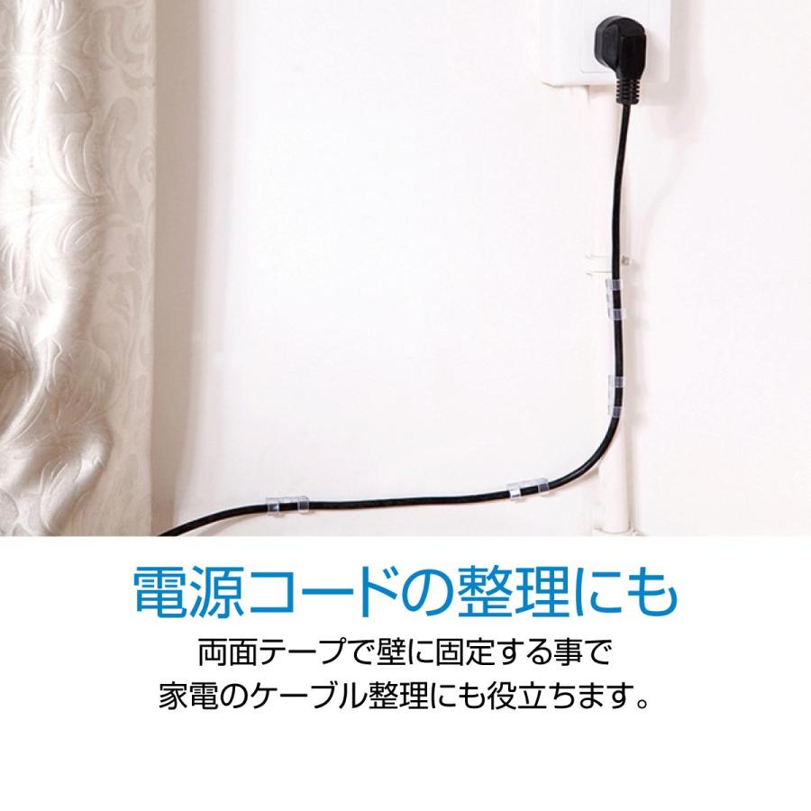 ケーブルクリップ 20個入り両面テープで机に貼り付けると側面でも固定されます。机の上の散乱するケーブルをまとめて整理できます。複数のケーブルを同じパソコンで使う時、ケーブル同士の絡まりやねじれを防ぎます。家電のケーブル整理にも役立ちます。