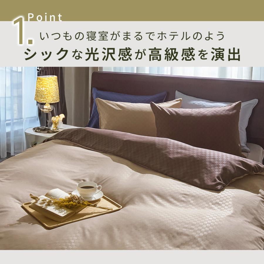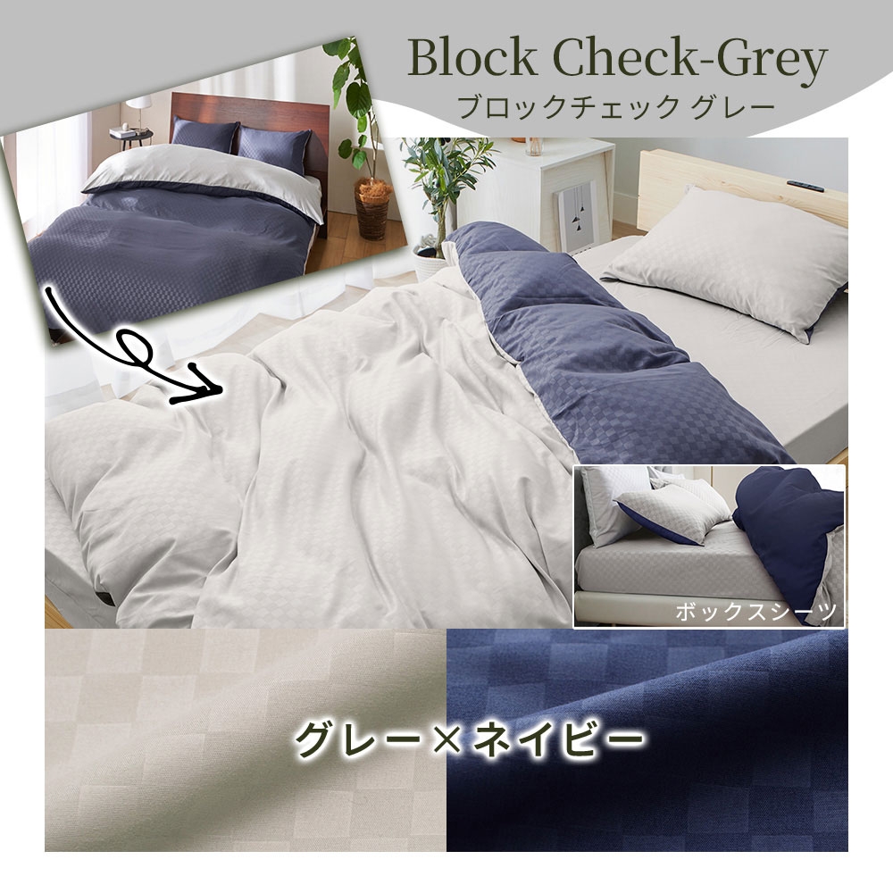 掛布団カバー:8ヵ所ひも付、全開ファスナー、両面使えるリバーシブル