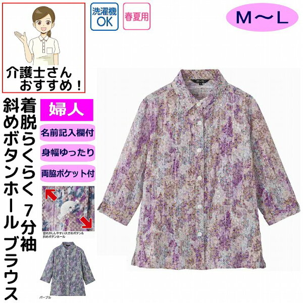 ブラウス シャツ 7分袖シャツ 7分袖ブラウス 7分袖斜めボタンホールブラウス M L シニアファッション 70代 80代 90代 …