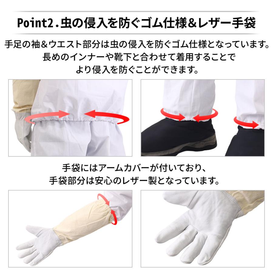 袖やウエスト部分は虫の侵入を防ぐゴム仕様