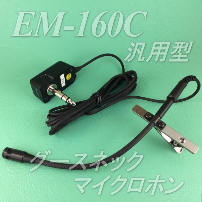 グースネック型の小型軽量マイクロホンです。衣類に取り付けて口元へマイクが来るように装着します。集音率もよく、バス車内での放送うに役立ちます。EM−160Cは汎用型のバス用マイクです。バスのアンプが電源供給型のコンデンサマイク対応で、Φ6.3mmのホーンプラグで接続します。