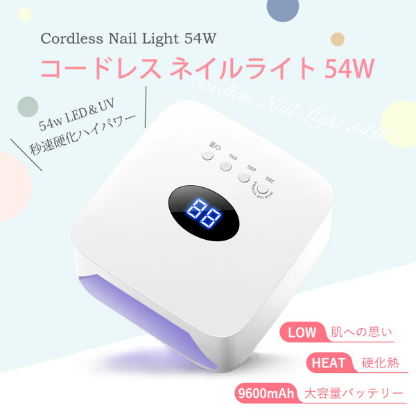 ジェルネイル UVライト LED ネイルライト ジェル ライト セルフネイル ネイルシール 対応 セルフネイル おすすめ uv led 54w レジンクラフト レジンアクセサリー 自動センサー UV ジェルネイル レジン ネイルアート セルフネイル LEDライト UVライト ネイルランプ チップ型LED 低ヒートモード搭載 バッテリー内蔵 ローヒート ハイパワー ジェル硬化 フットネイル