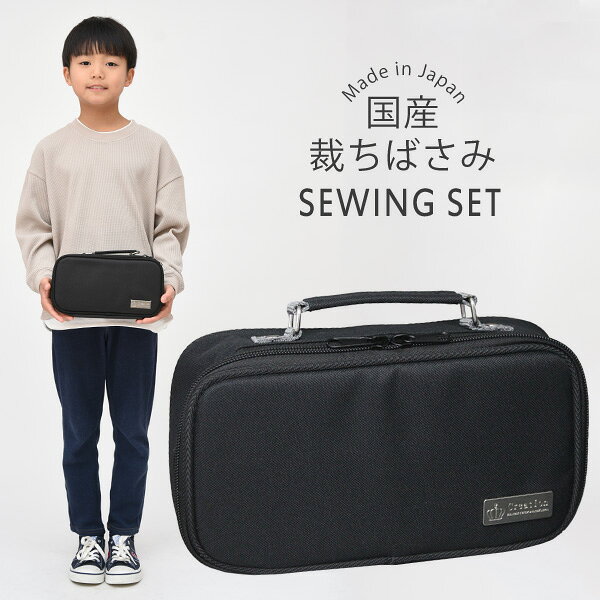 裁縫セット 小学校 小学生 大人 男 男の子 女の子 男女兼用 ソーイングセット 国産裁ちばさみ バッグ プレミアムブラック 黒 RSLA