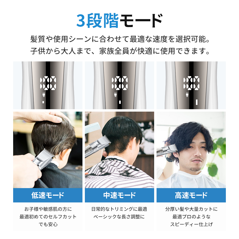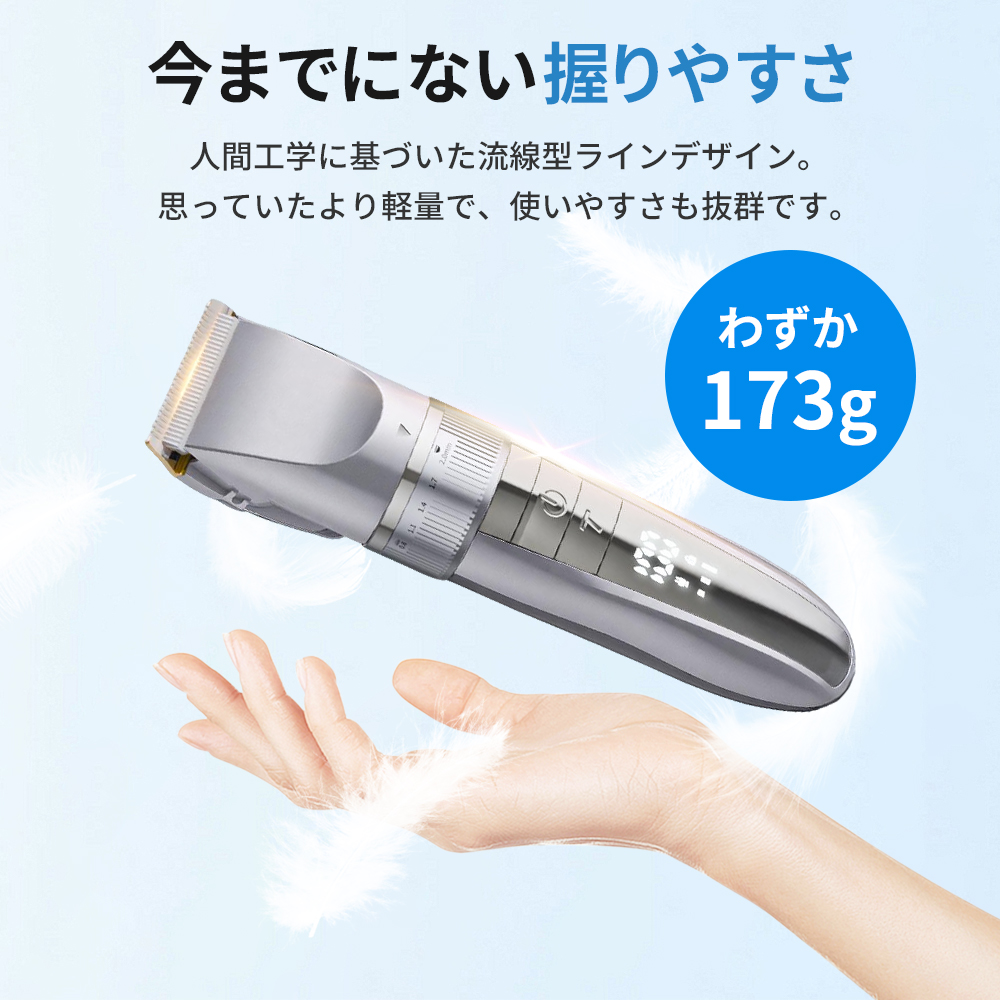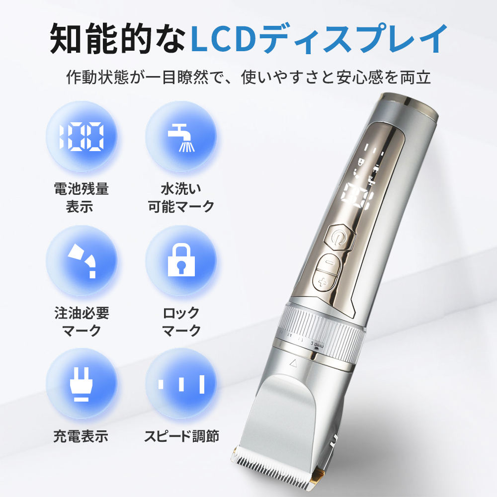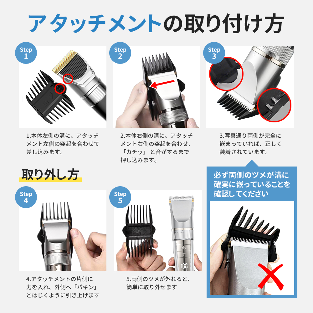 ●付属品:充電ケーブルx1、アタッチメントx5、櫛x1、掃除用ブラシx1、蓋x1、日本語説明書(保証書)x1