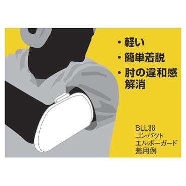 コンパクトタイプエルボーガード(BLL38)は、約120g設計で軽量化を図り、装着ベルトシングル構造により着脱も簡単。