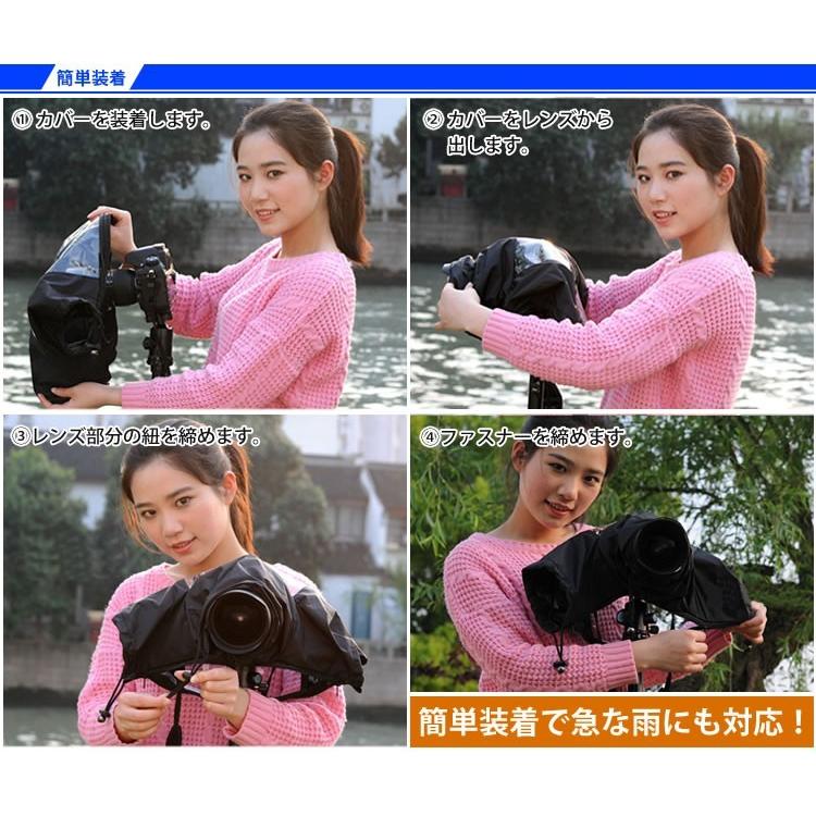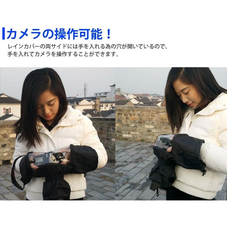 カメラ全体をすっぽり包むので雨の中でもカメラを濡らさずに撮影可能。