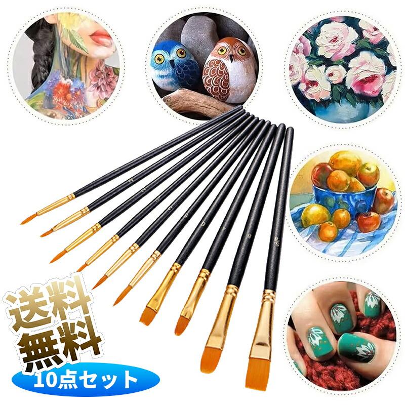 【特徴】:筆は全体細いです。繊細な絵を描く可能。人体ペイント、陶芸、粘土細工などもにも使えます。10本 画筆套装、異なるタイプ、異なる形 、各種の絵画の需要を満たす。