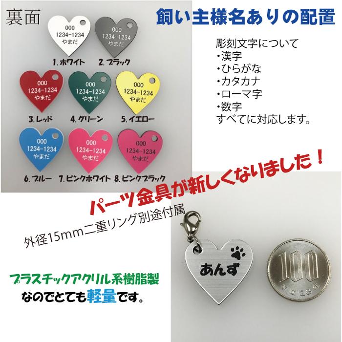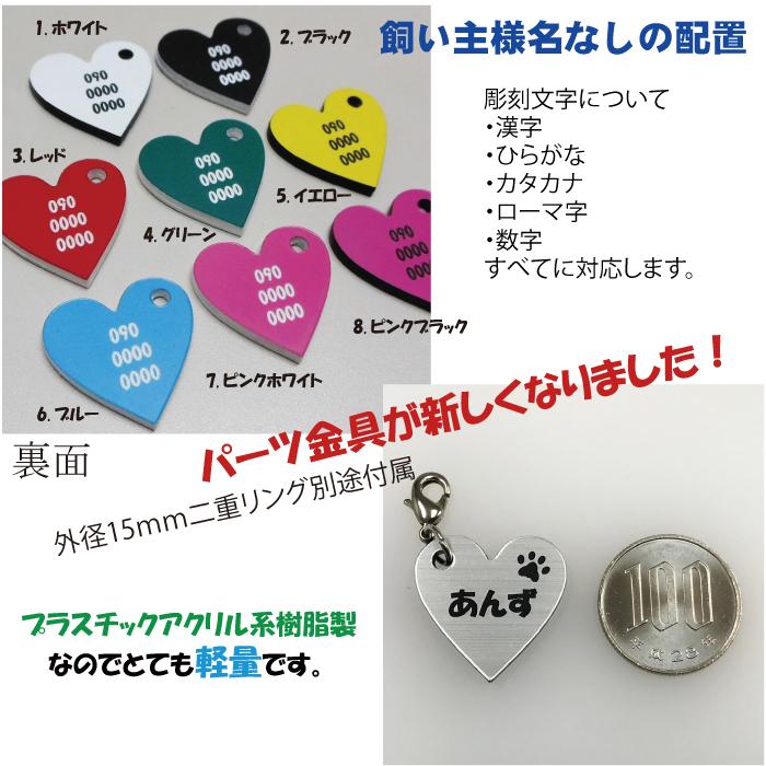 愛犬、愛猫用のとても軽い迷子札です。電話番号、名前を彫刻いたします。もしも迷子になった時、これをつけていれば連絡先がわかります!本体サイズ:W27×H26×T3mmWリングサイズ:外径15mm/カニカン付属素材:アクリル系樹脂重さ:アクリル本体1.4g+金具1.0g※メール便での配送となります。※メール便はポストへの投函となります。到着日、到着時間の指定は出来ません。