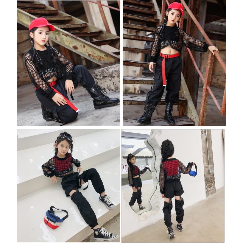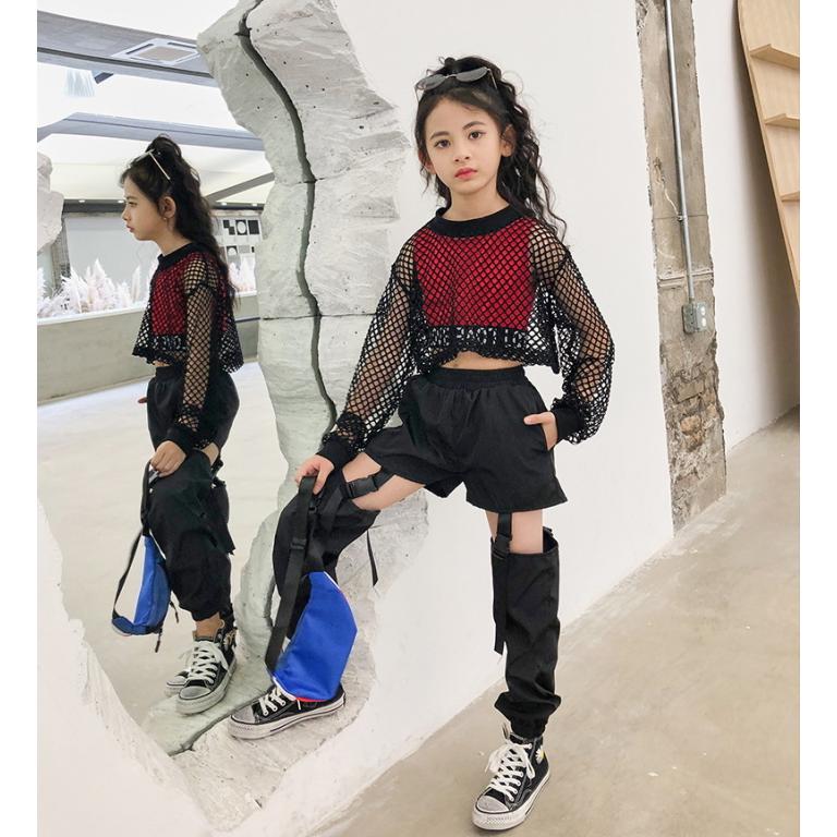 ダンス衣装 メッシュ トップス Tシャツ 長袖 ショート丈 シースルー へそ出し ダンス 衣装 セクシー ストリート ヒップホップ 原宿 派手 透け編み セクシー レディース ガールズ キッズ 子供 トレーナー スウェット ギャル スケーター ステージ衣装 夏 ブラック 黒