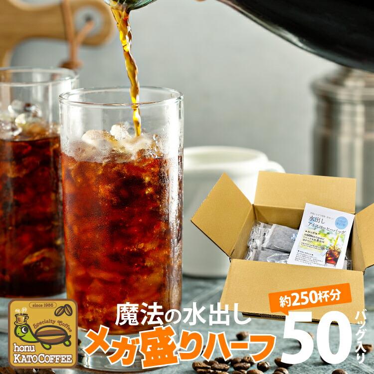 水出しコーヒーは、お湯を使わずお水に浸して抽出するコーヒーです。 低温で長い時間をかけてコーヒーの味が抽出されるため、とってもマイルドな味に仕上がります。そんな魔法の水出しコーヒーバッグに嬉しいメガ盛りハーフセットが登場!