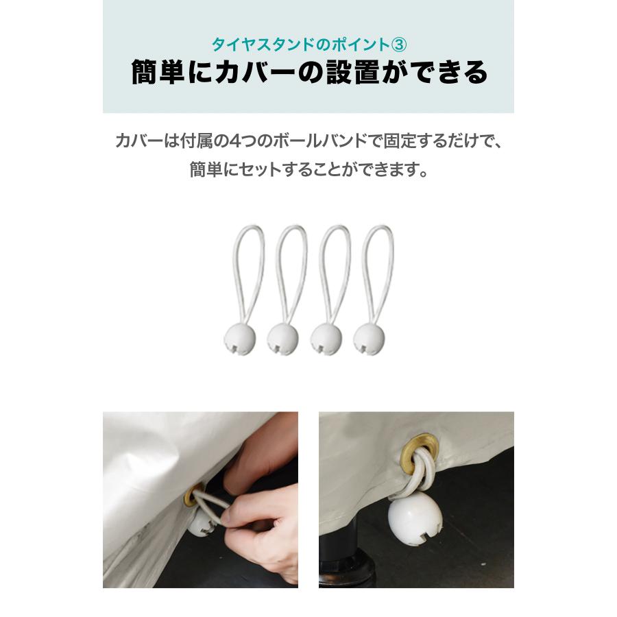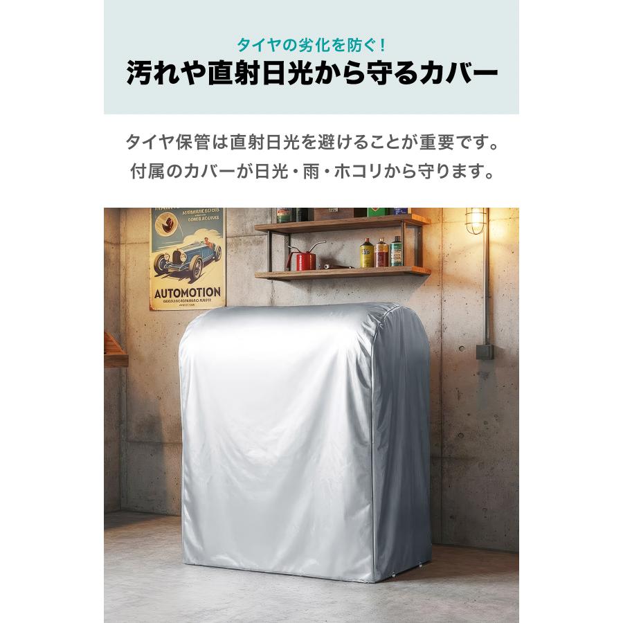 タイヤを保管する時に大事なのは、直射日光に当たらないこと。このタイヤスタンドには専用カバーが付属しているので、直射日光や雨・ホコリなどから守ることができます。