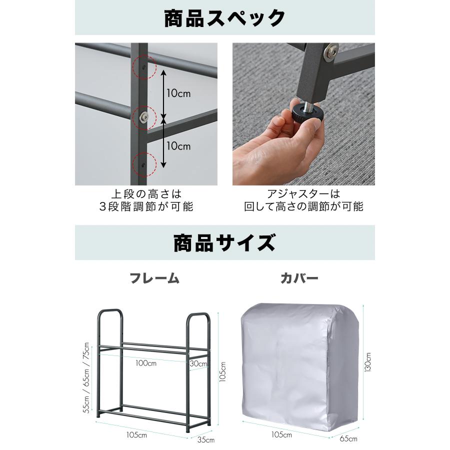 置き場所に困るスペアタイヤの専用ラックです。季節の変わり目や、スタッドレスタイヤのオフシーズン、買い替え用と何かと増えるタイヤの収納にとっても便利なアイテム。上段の高さはタイヤに合わせて3段階調節が可能です。また、専用カバー付きでホコリなどから守ります。