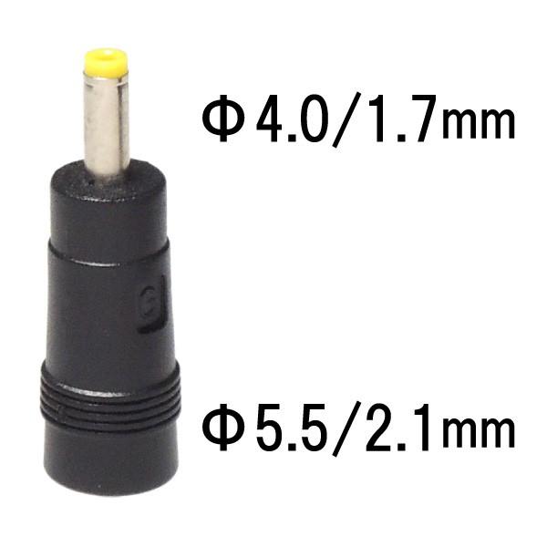 DCジャック(メス端子): 外径: φ5.5mm 内径: φ2.1mm変換後プラグ(オス端子): 外径: φ4.0mm 内径: φ1.7mm 端子長: 11mm
