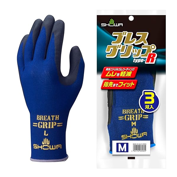 ショーワグローブ(Showaglove) 3双パック No.380Rブレスグリップ type-R ネイビー Mサイズ 3双