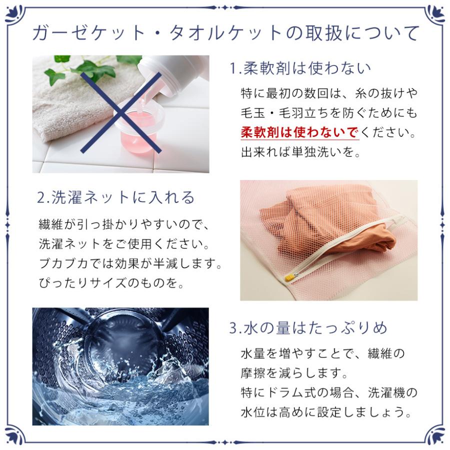 たっぷり空気を含んでやわらかく、洗うほどに肌になじむガーゼ生地です。