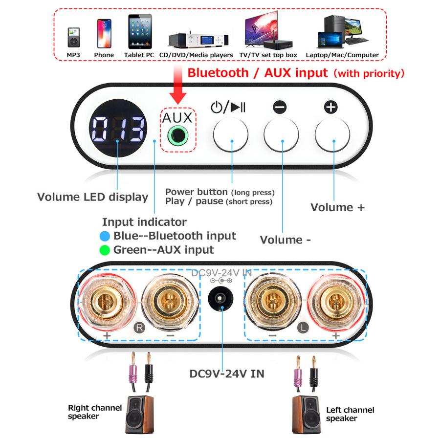 有線および無線入力:3.5mm AUXおよびBluetooth入力を使用すると、多くのオーディオデバイスと接続して、HiFiサウンドを追求するオーディオファン専用に設計されたより良い音質を提供できます。