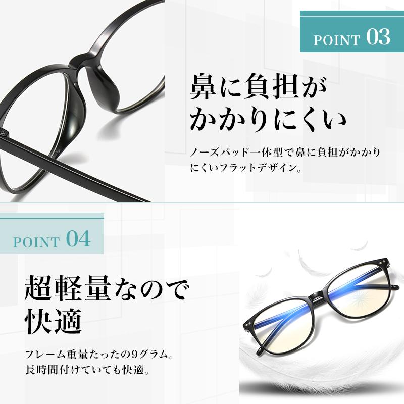 ・フレーム重量たったの9グラム、長時間着けていても快適なPCメガネです
