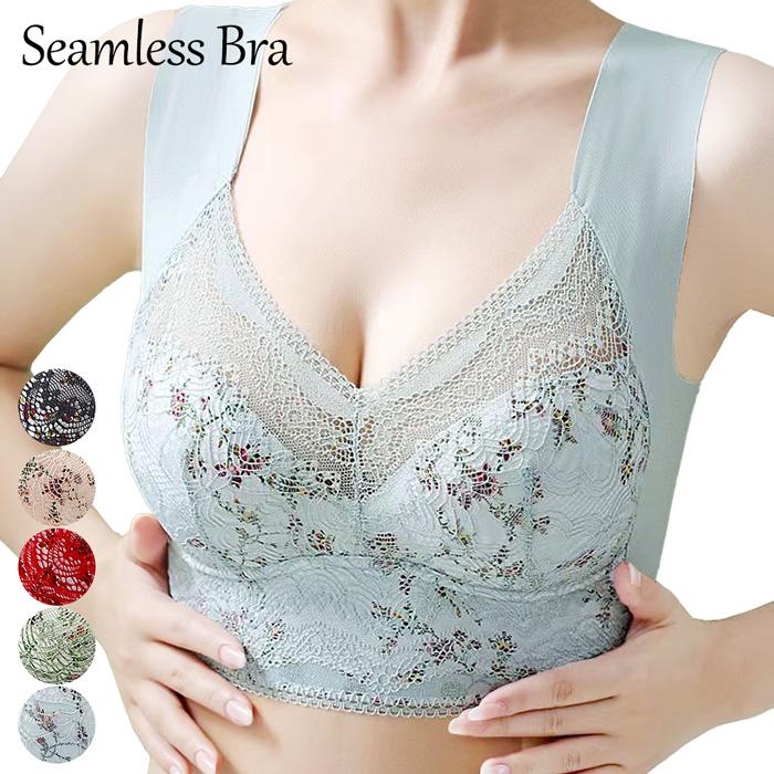 ・花柄&透けるレースで可愛さアップ!楽な付け心地シームレスブラ