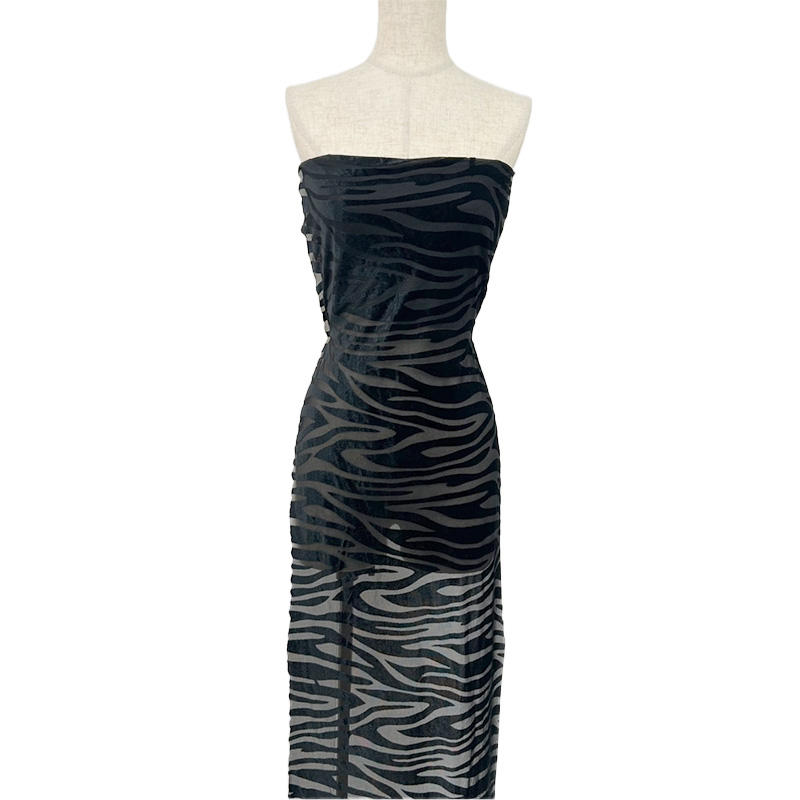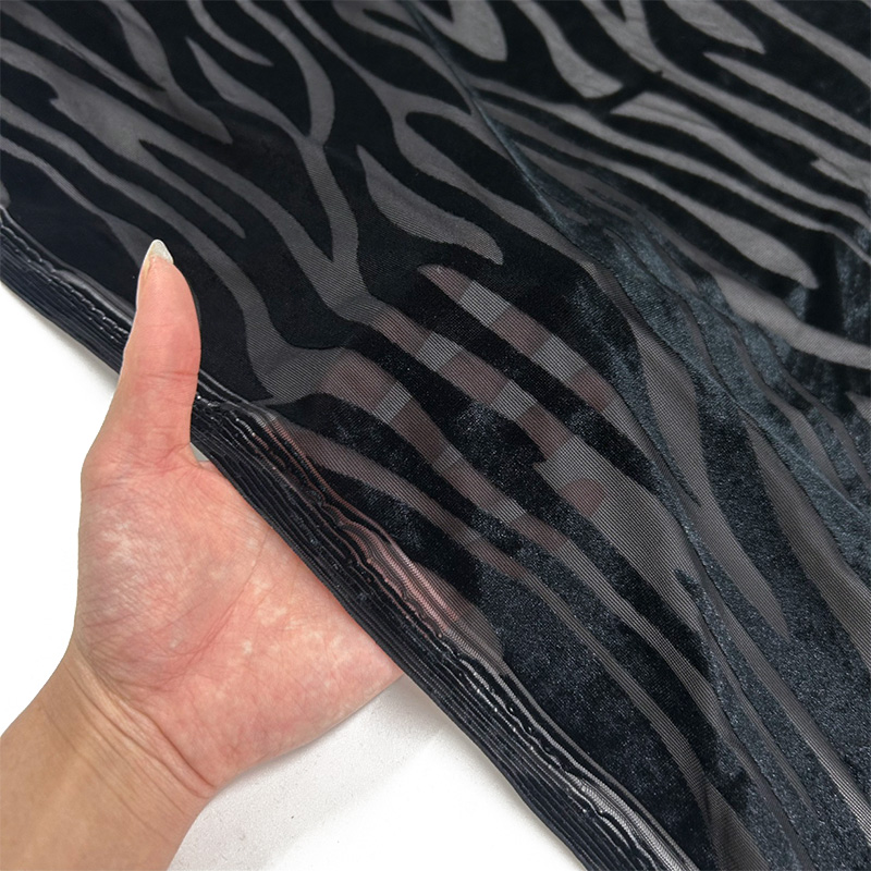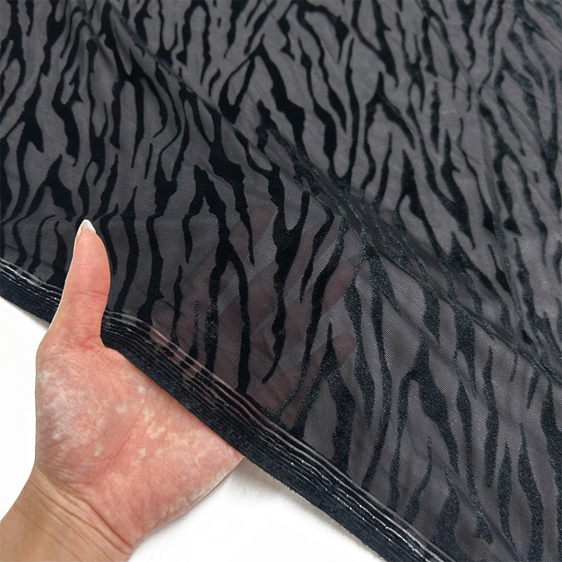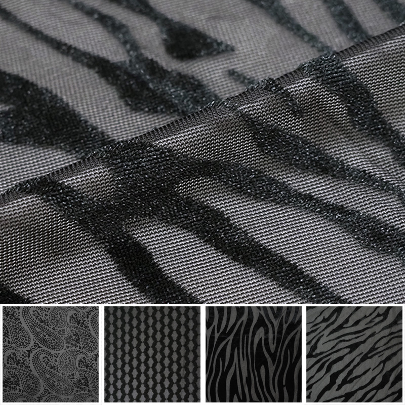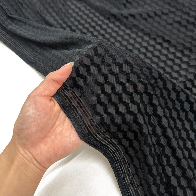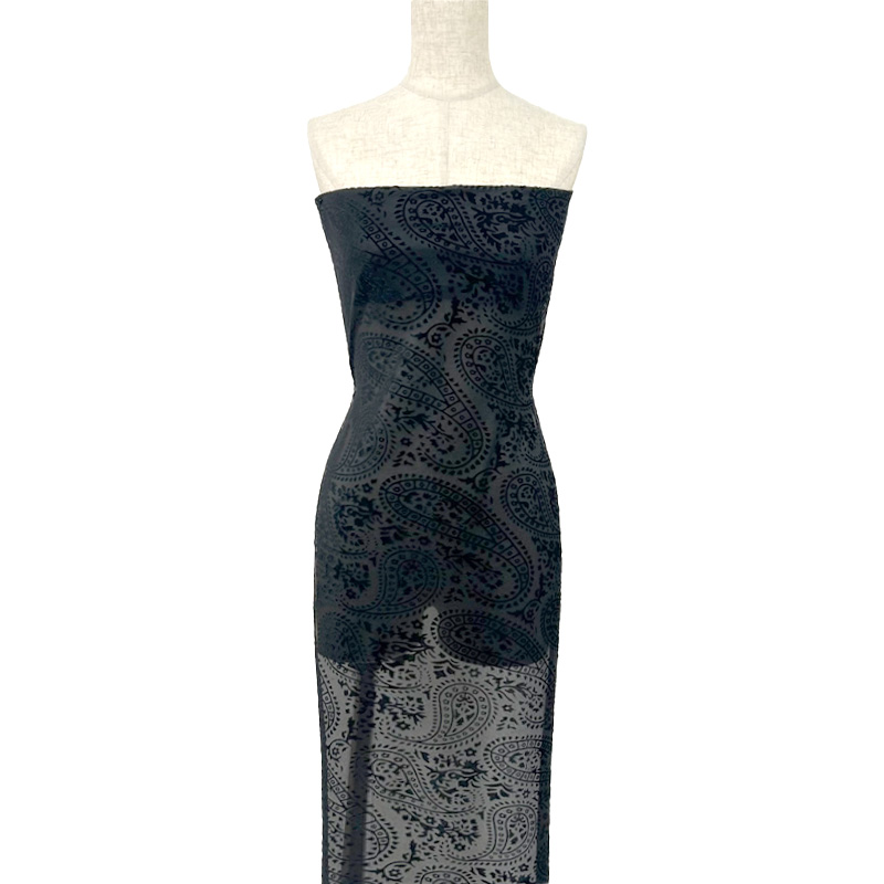 透け感のある編地にベロア調のオパール加工で柄を表現しています。